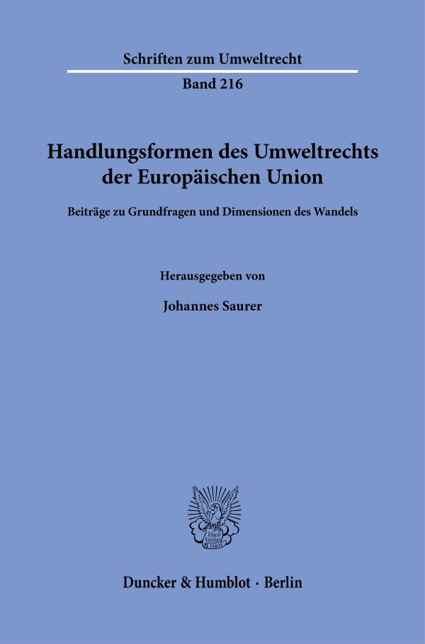 Primärrechtliche Vorgaben an die Wahl der Handlungsformen im EU-Recht, in: Saurer, Johannes (Hrsg.), Handlungsformen des Umweltrechts der Europäischen Union, Berlin 2025, S. 99–113 von Prof. Dr. Andreas Glaser